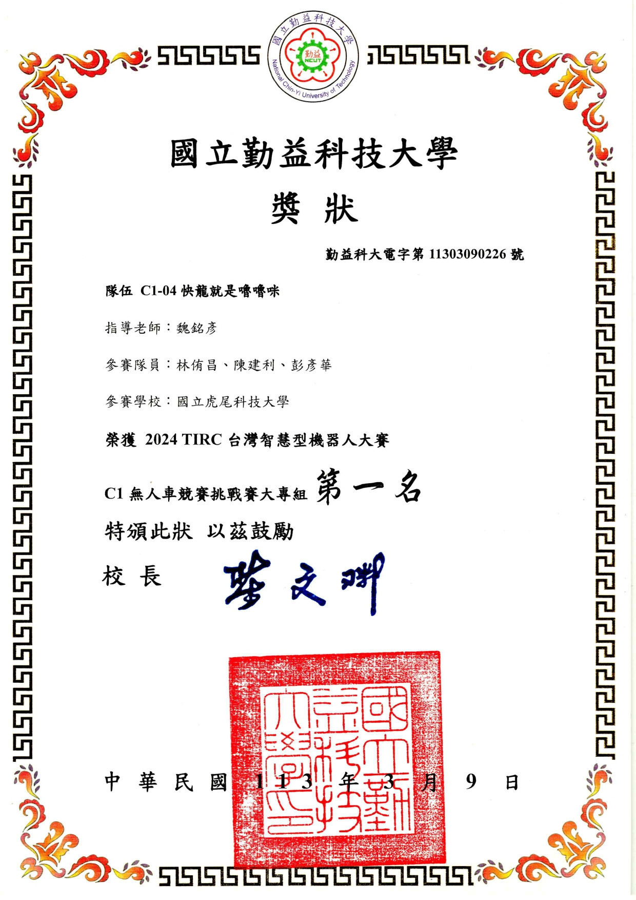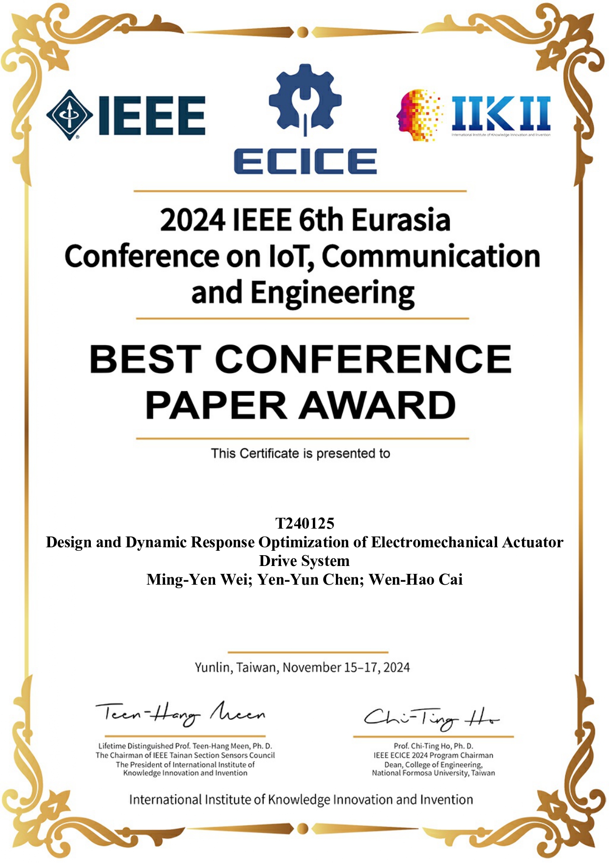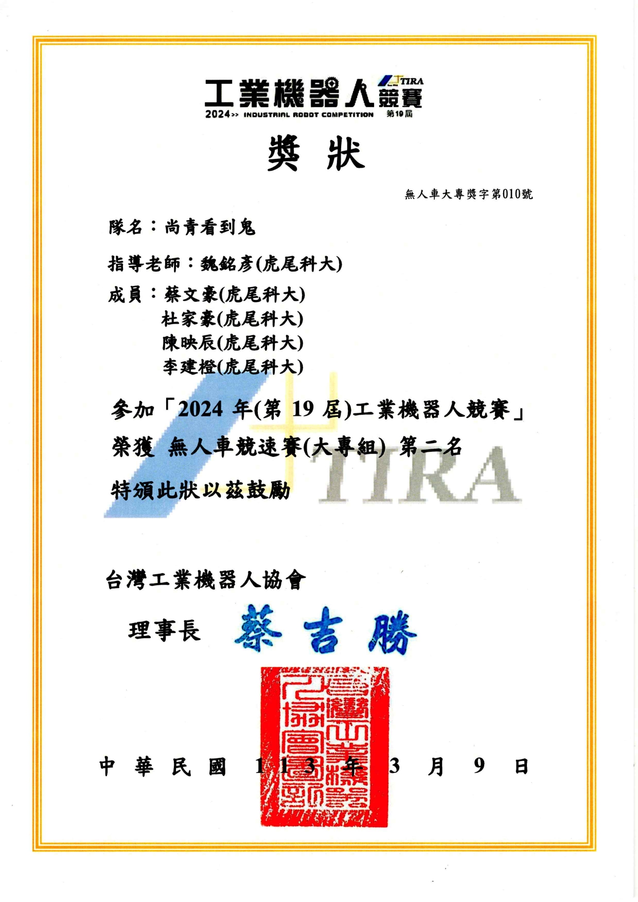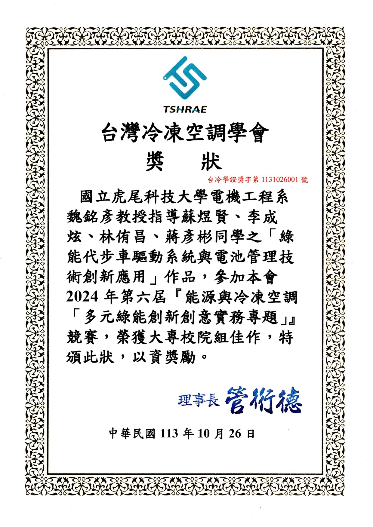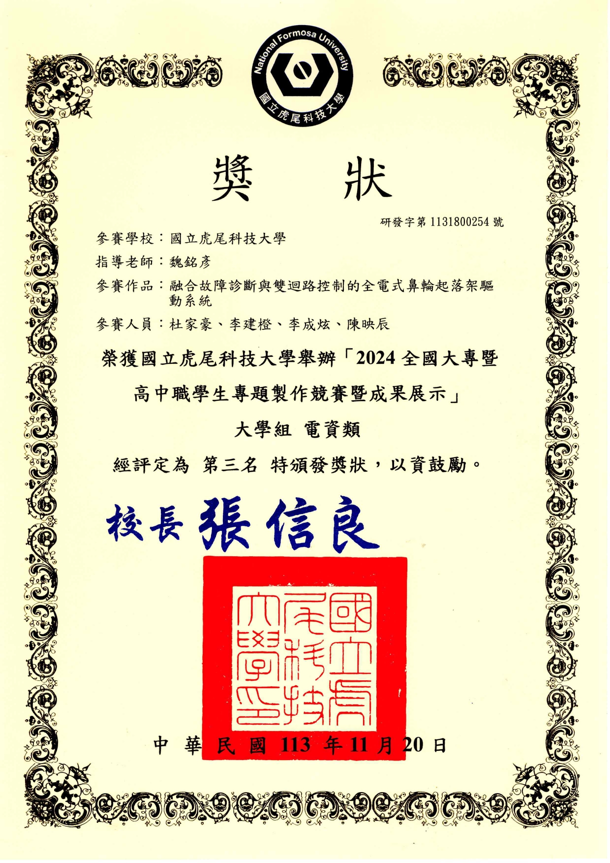 恭賀 碩電機二甲-蔡文豪 在競賽中表現亮眼. (蔡文豪-基於強健性步階回歸控制與深度學習的永磁式線性同步馬達無感測位置估測技術)