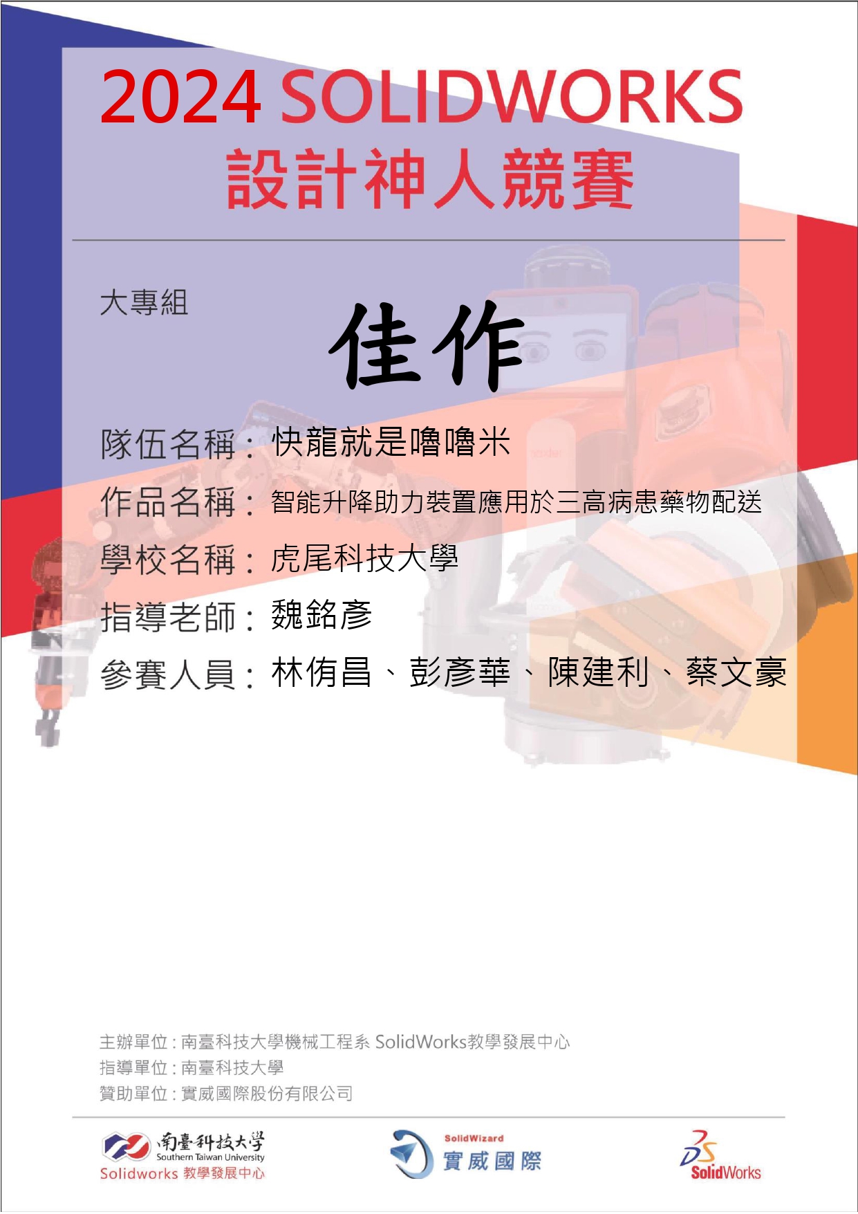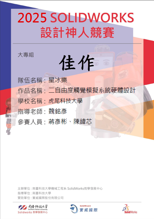 恭喜 "碩電機二甲-蔣彥彬、碩電機一甲-杜家豪"在創新實作競賽-機械自動化及手工具創新組中表現亮眼.