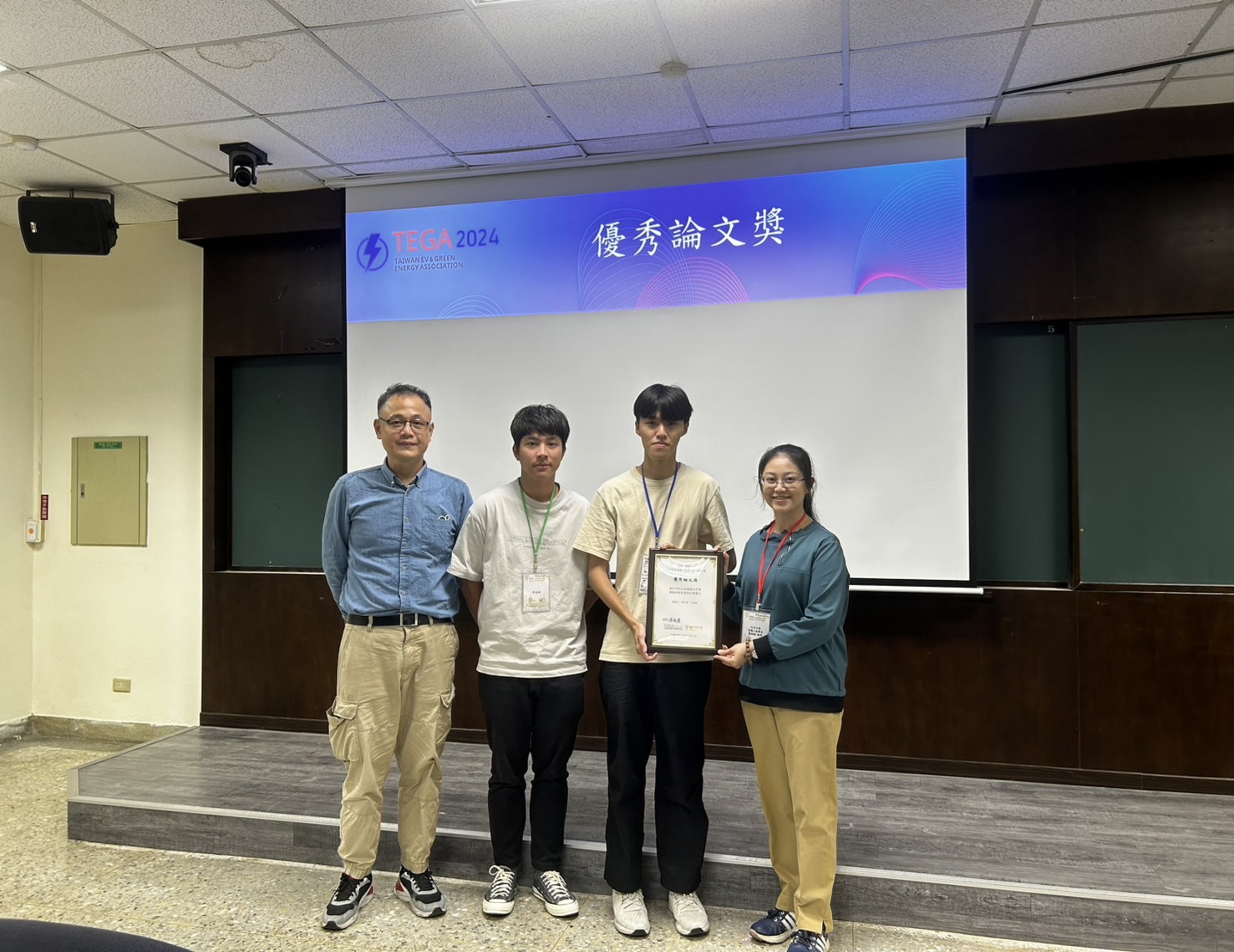 恭賀 "碩電機一甲-蘇煜賢、蔣彥彬 四電機四甲-李成炫"在競賽中表現亮眼. (綠能代步車驅動系統與電池管理技術創新應用).